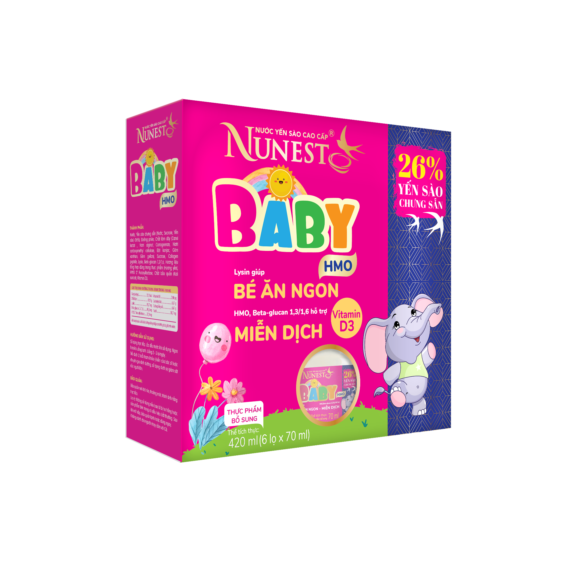 Nước yến sào cao cấp Nunest Baby HMO 26% yến sào chưng sẵn, Lysin, HMO, Beta glucan 1,3/1,6, Vitamin D3...